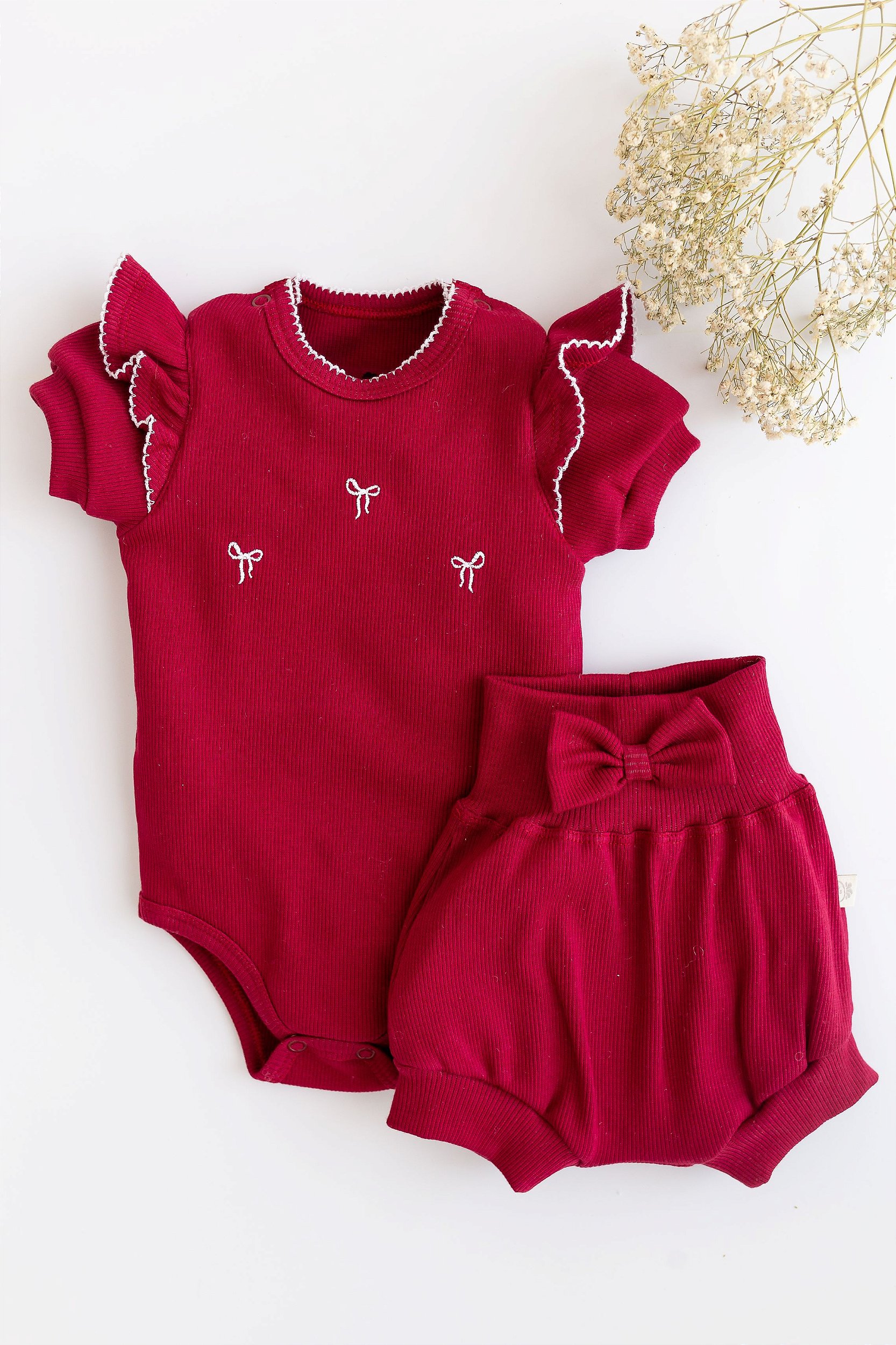O conjunto da D’Bella for baby traz um toque de charme extra para os dias quentes. O body manga curta vem com babado e acabamento em picueta, além de bordado delicado na peça, que realça o lado fofinho. O shorts confort, sem elástico no cós, veste suavemente e permite total liberdade de brincar e explorar. Um kit superconfortável e cheio de estilo para o enxoval da bebê.